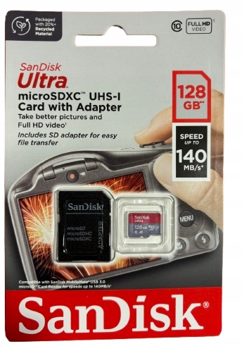 Karta microSDXC SanDisk ULTRA 128GB 140MB/s A1 Cl.10 UHS-I+ adapter SD
